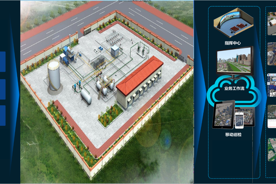 运用地理空间信息技术(GIS)、数字孪生技术(DT)、三维图形技术(3D)、物联网技术(IOT),建立一个安全、可靠、高效的三维场站仿真模型,对场站地理信息数据、设备数据、生产数据及业务系统进行综合管理。
